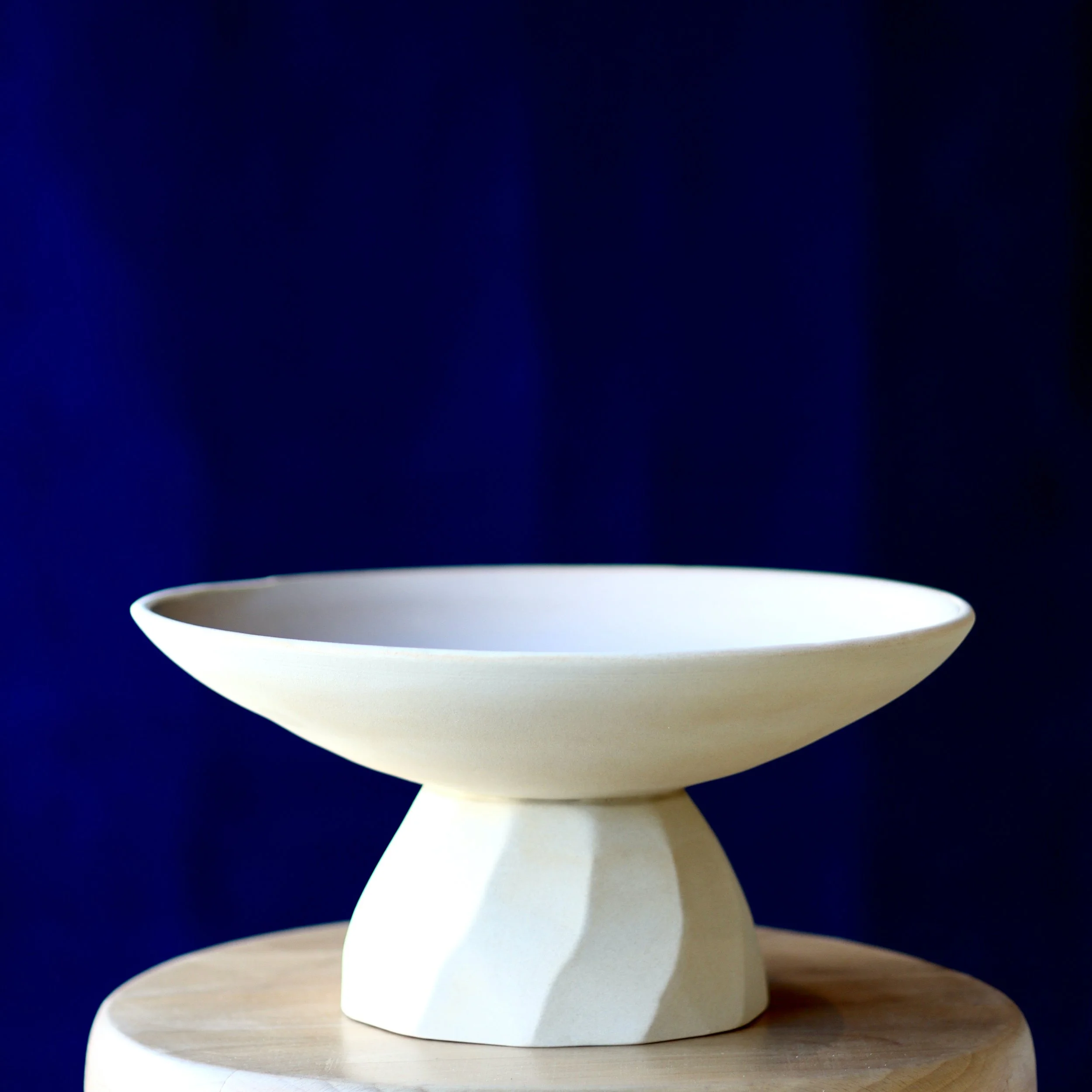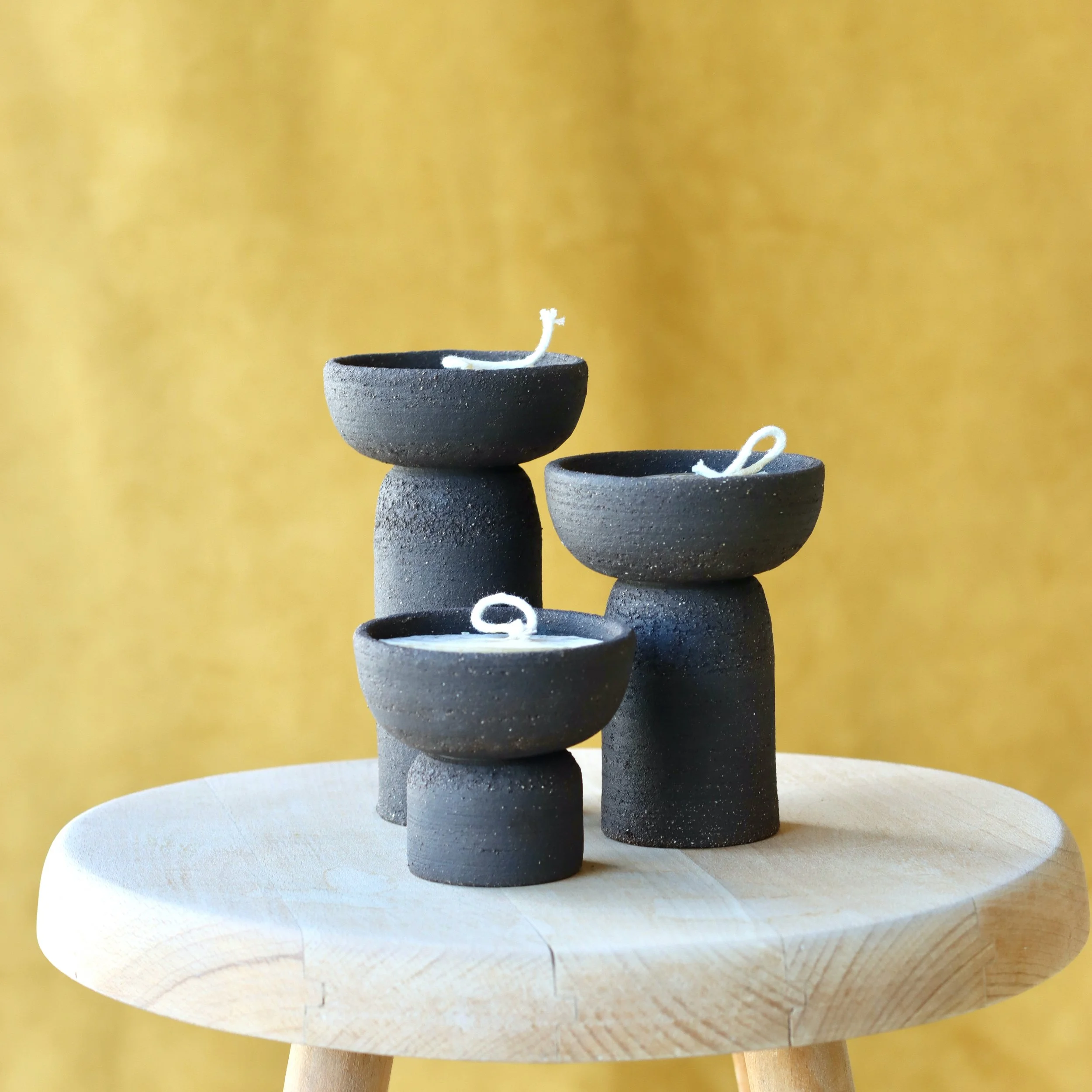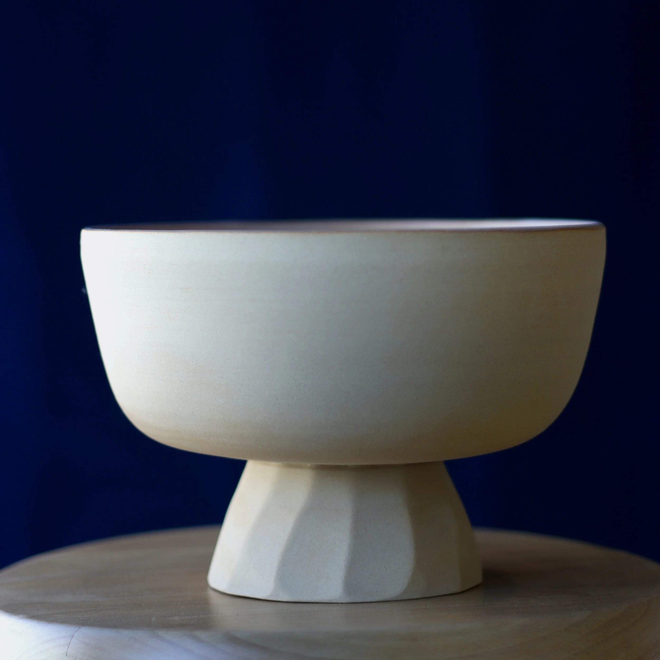 Mes pièces naissent sur le tour puis sont retravaillées : assemblées, taillée, modelées. J’ai une attirance particulière pour la terre brute, surtout lorsqu’elle offre du relief et de la texture, joue avec la lumière. Le dialogue entre la douceur d’une courbe et la netteté d’une facette guide souvent mes formes.